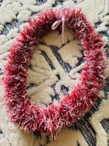 My oldest nephew graduated from high school yesterday! Woohoo! But it was a long night for me and the kids since the venue was a bit far, a little long and since we live in Hawaii, it is custom to find the graduate and give him leis. Fresh flower leis are so pricey these days and I don’t have a plumeria tree to make my own leis from the flowers so instead I made yarn and ribbon leis. I was making them all last week actually.