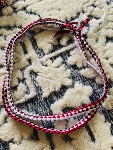 I made this eye lash yarn lei which was super easy and you can find lots of tutorials on youtube. His school colors and it’s my alma mater too is Maroon and White. I also tried my hand and making ribbon leis, which I found super relaxing to do. I even taught my mom so she could make a bunch for him also.